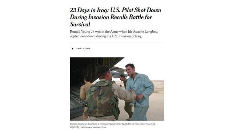 Associated Press'e (AP) başlıkşan ABD Hava Kuvvetlerinden emekli önceki F-16 pilotu Houston Cantwell, ABD'nin en oğullar 2003'te Irak işgali esnasında tek Apache Longbow helikopterinin düşürüldüğünü hatırlattı.