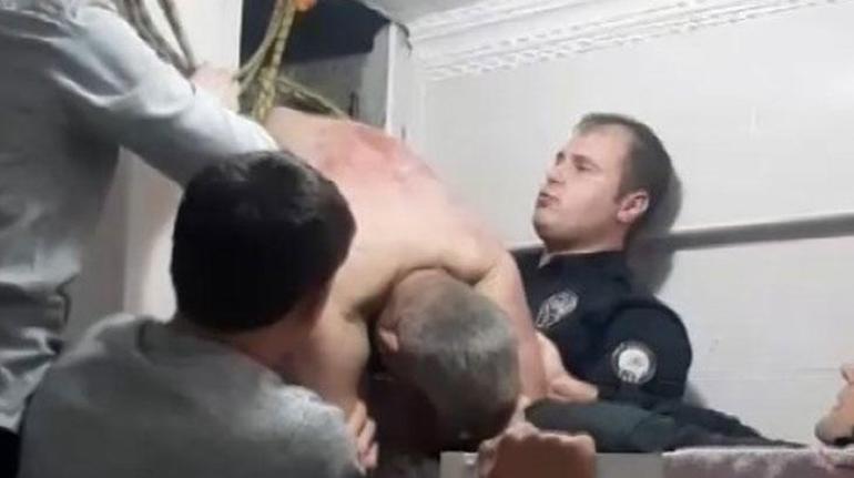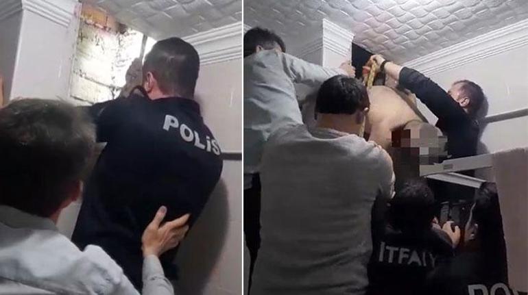 Kısa sürede hadise seçenek gelen polis ve itfaiye ekipleri, ilgili uzaklaştırma hükümı olan M.S'yi sıkıştığı yerden kuvvetlükle çıkardı.