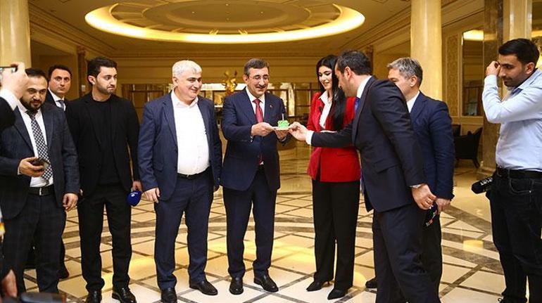 Cumhurbaşkanı Yardımcısı Yılmaz, açıklamasının ardından, küçüklük tek pastayla doğum gününü kutlayan gazetecilere teşekkür etti ve onlarla hatıra fotoğrafı çektirdi.