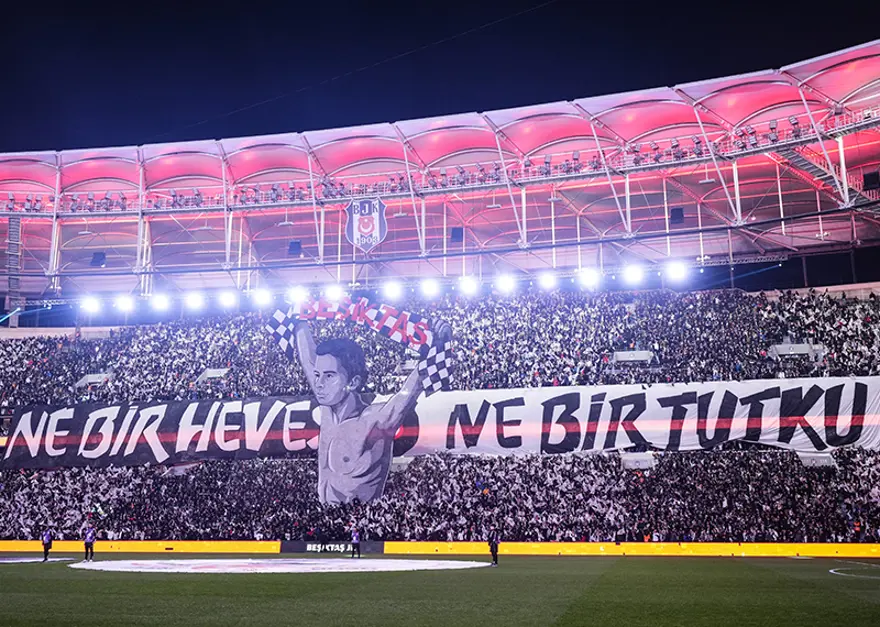 Beşiktaş-Galatasaray derbisinde siyah-beyazlı taraftarlar, stadı tamamlanmış doldurdu.