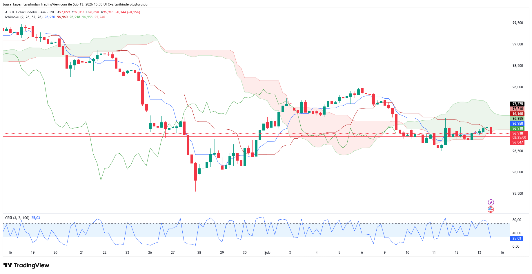 Dolar endeksi eleştirel bilgi öncesinde 97,00 puanda bulunuyor. Verinin ardından 96,84 seviyesinde hareketleniyor.