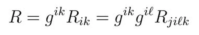 Eğrilik skaleri ise adından anlaşılacağı üzere hiç tek vektörel bileşene malik değildir, diğer sıfırıncı mertebeden tek tensördür. Birinci mertebeden tek tensörün ise tek vektör olduğunu hatırlayın. Eğrilik skaleri aşağıdaki gibi ifadeleri edilir.
