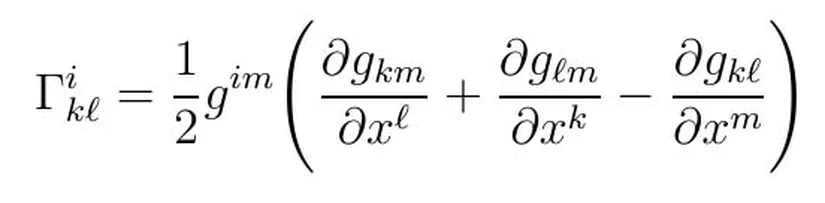 Yukarıda Riemann tensöründe mekan saha ifadeleri olan Gamma ikl ise Christoffel sembolüdür ve tahminen metrik bağlantıyı inceler. Bağıntısı aşağıdaki gibi verilir:
