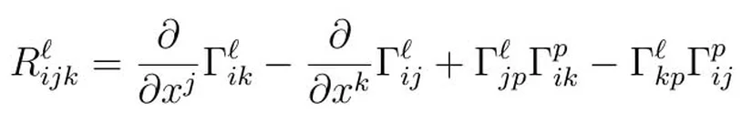 Burada RijkjR^j_{ijk}Riemann tensörüdür ve RikR_{ik}'nin hesaplanabilmesi için RijkjR^j_{ijk}'nin hesaplanması lüzumir. Burada ben ve k değerleri bizim seçimimiz iken jj ve pp değeri seçimimizde yoktur. Bunun hesaplanabilmesi için j değerlerinin tümü için toplamı alınır.