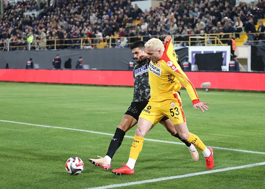 Alanyasporlu Fatih Aksoy ve Galatasaraylı Barış Alper Yılmaz'ın ikili mücadelesi.