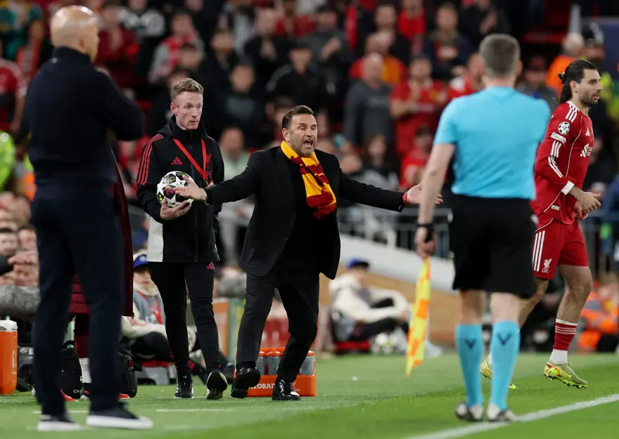 Galatasaray Teknik Direktörü Okan Buruk'un tek mevki sonrası itirazı.