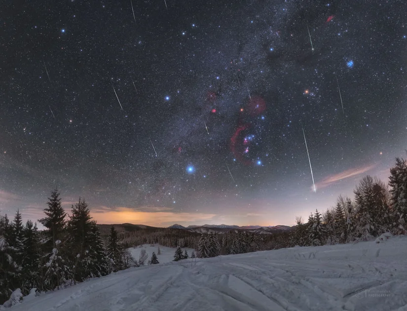 Yukarıdaki görselde Orion takım yıldızının kemerindeki Alnilam, Alnitak ve Mintaka'yı gökyüzünde rahatlıkla tanıyabilirsiniz. Bunlar, Orion'un kemerini oluşturan üç tane taraf yana dizili yıldızdır. Altındaki ışıltılı yıldız da Rigel'dir. Hemen solunda (fotoğrafın vasat altında) görülen çok ışıltılı yıldız ise Sirius'tur. Orion kemerinin üstünde kalan kırmızı yıldız ise Betelgeuse'dür. Sağ tarafındaki ışıltılı kırmızı yıldız ise Aldebaran'dır.