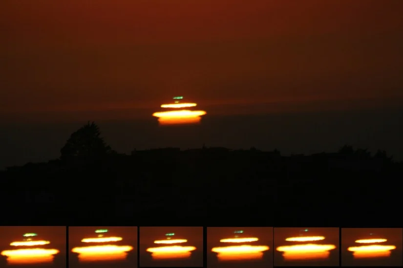 Güneş'ten gelen yeşil parlamanın nedeni, ışığın kırılmasıdır. Fakat onu ender kılan şey videodaki başka tek detayın ardında saklı. Çok bariz tek şekilde ayrım ediliyor ki Güneş batarken artık tek küre şeklinde görünmez. Sanki parçalanıyormuş gibi tuhaf, basık, parçalı şekiller alır. Bunun sebebi yine atmosferin kendisidir fakat ayrıca tek şey daha var.