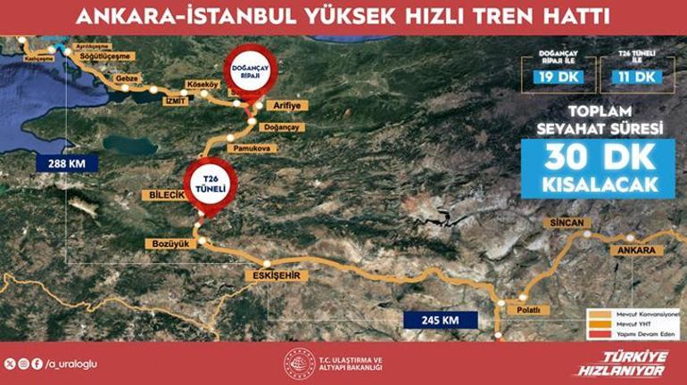 Sapanca-Doğançay Ripajı ile Bilecik T26 tüneli tamamlandığında Ankara-İstanbul arasında 4 zaman 7 an süren seyahatin 3 zaman 37 dakikaya düşmesi hedefleniyor.