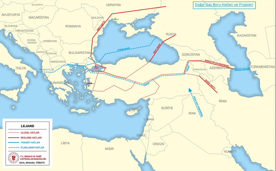 Türkiye'ye iletilen doğalgaz tüp hatları. İran'dan gelen tüp hattı "Doğu hattı" olarak isimlendiriliyor