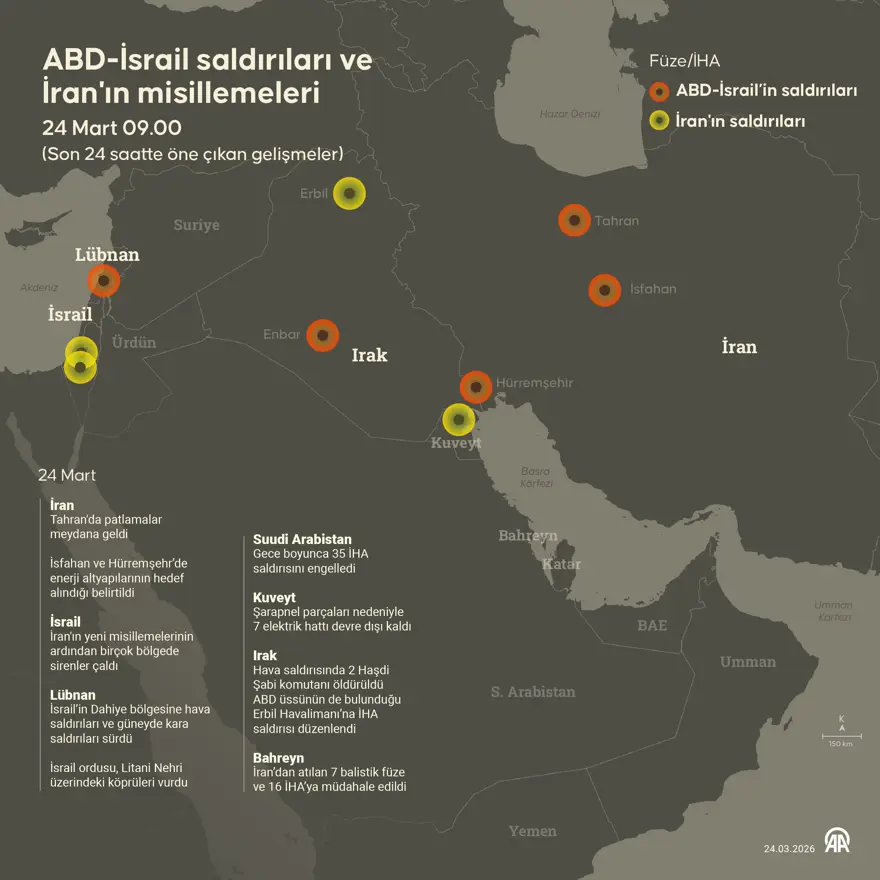 Savaşın 25. günüyle beraber İran'ın Körfez ülkelerine yaptığı saldırılarda savaşın birinci haftasına kıyasla düşüş gözlemlenirken, İsrail'e yönelik saldırılar dahaaz bununla birlikte daha tesirli tek seyir izliyor.