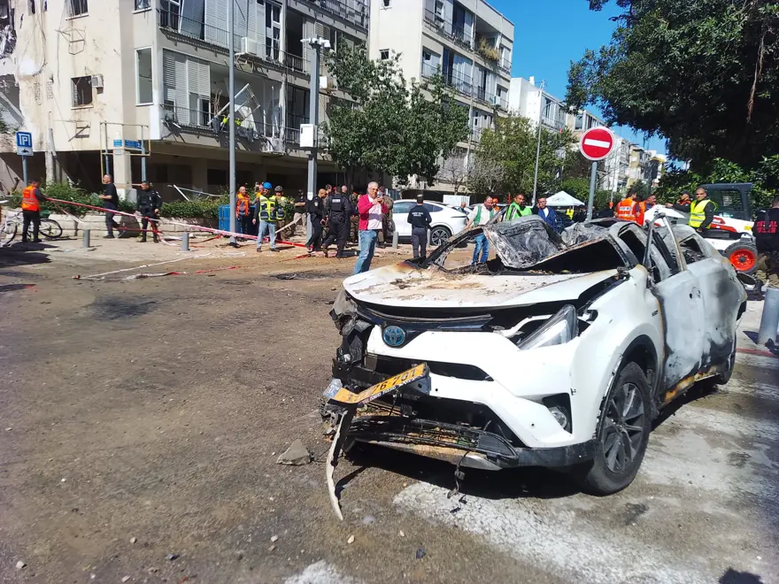 NTV ekibinden Osman Terkan ve kameraman Cüneyt Ali Horozal, Tel Aviv'deki zarar gören araçları ve binaları görüntüledi.