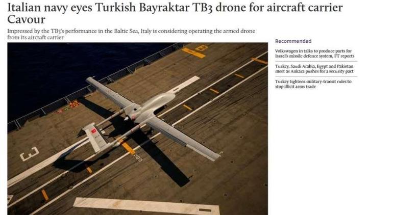 Türkiye müdafaa sanayi üretiminde emin olan adımlarla ilerlerken, bu alanda dünyası pazarına açılmaya da devam ediyor. Middle East Eye’ın haberleriine göre, İtalyan donanmasının, Türk yapımı Bayraktar TB3 silahlı insansız havada aracını satın edinmekla ilgilendiği, üstleri düzey tek İtalyan ordu ytesirlinin geçen hafta parlamentoda yaptığı açıklamada belirtildi.