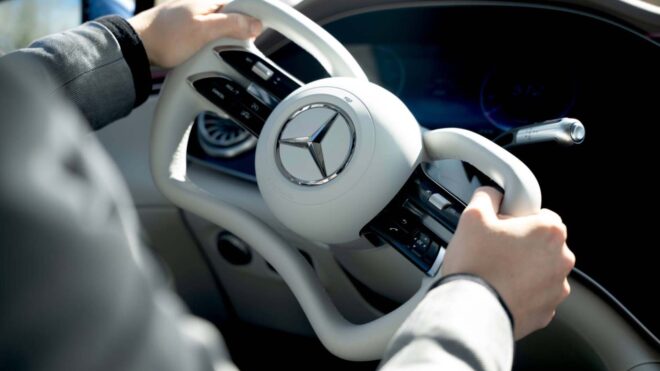 Bu yıl yollara çıkarılacak makyajlı Mercedes-Benz EQS, şirketin doğrulamasına göre “steer-by-wire” direksiyon sistemiyle geliyor. Bu teknolojiyi seri üretime geçiren birinci Alman otomobil üreticisi olacak Mercedes-Benz, yepyeni tamamlanmış elektrikli aracı yukarıda görebileceğiniz tarzda tek yarım direksiyon simidiyle birlikteki sunacak. Steer-by-wire (kablolu yönlendirme), direksiyon simidi ile tekerlekler arasındaki mekanik bağlantıyı (mil/şaft) tamamlanmış ortadan kaldırıyor. Bu teknolojiler sayesinde parklar ederken büyük basitlık sağlanabiliyor; tekerlekler, ufak tek hareketle kesinlikle döndürülebiliyor. Fiziksel bağlantı olmadığından, bozuk yollardaki sarsıntı ve titreşimlerin direksiyon simidine iletilmesini manileyen sistem, Mercedes-Benz tarafından 1 milyon kilometrelik testlere tabi tutulmuş ve yedekli tek altyapı kurularak çiftli bağlantı, ilave aktüatör ve yedek güç kaynağı ile güvenli hale getirilmiş. Arka aksı da hareket ettirebilen altyapı, aktarıldığı kadarıyla EQS sonrasında S-Class ve diğer modellere da sunulacak.