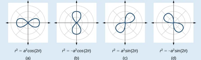 Bir lemniskatın grafiğini oluşturan yaygınlaşan denklemler a≠0a\neq0 bulunmak üzere r2=a2cos2Θr^2=a^2cos2\Theta ve r2=a2sin2Θr^2=a^2sin2\Theta şeklindedir. Burada aa, grafiğin boyutunu belirler.