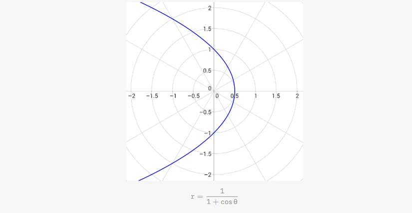 Burada ee, konik kesitin dışmerkezliğidir ve ll, kutuptan eğriye kadar yy ekseni boyunca olan olan uzaklıktır. ee'nin farklı değerleri, farklı türde konik kesitler verecektir: