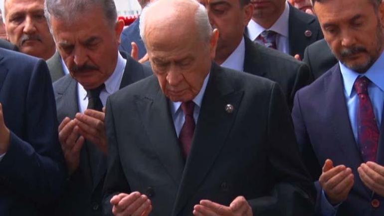 Bahçeli'ye yaygınlaşan başkan yardımcıları ve çeşitlilik sayıda partili eşlik etti. Bahçeli, Türkeş'in kabrine karanfil bırakıp, partililerle birlikteki namaz etti.