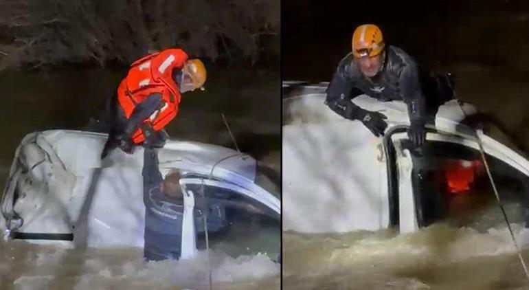 İlginizi ÇekebilirMahallelinin ihbarıyla bölgeye jandarma, AFAD, itfaiye ve UMKE ekipleri sevk edildi. Sürücüye dalgıçlar halat yardımıyla ulaşabildi. Debinin yüksekliği dolayı kuvvetlükle çalışmalar yapan vazifelilerden arasında biri aracın üzerine çıktı. Dalgıcın üzerindeki can yeleğini çıhükümak verdiği sürücü, gerilen halatla kıyıya çekildi.