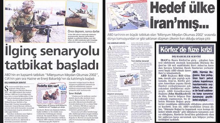 Zamanında, Milenyum Meydan Okuması isimli tatbikat ABD tarihinin en iddialı ve maliyetli ordu simülasyonuydu. ABD ordusunu (geleceğe yönelik 5 yıllar sonrasına ait yeteneklerle) isimsiz gizilgüç tek düşmana mukabil karşıya getirdi ve sonucun gelecekteki stratejiler ve tedarikleri hükümlarını malumatlendirmesi hedeflandı. Öyle ya her arasında biri tatbikat, gerçeği olması beklenen neticeları alma çabası ve bunun sağlamasıydı. ABD’nin da bugünleri hatırlatma eden bu tatbikatında al ve mavi kuvvet isminde ikisi takımları vardı. Kırmızı kuvvet, Orta Doğu’da ABD tarafından ‘düşman’ görülen devletydi. Kırmızı gücün kim olduğuna ilişkin en çarpıcı satırları ise tatbikattan kısa süresi sonraları New York Times yazmıştı. Senaryonun tamamıyla Basra Körfezi’nde geçtiği kaleme alınmış ve Irak’tan sonraları dizi İran’a ileriki denmişti. 2002’deki bu tatbikattan yalınce 4 yıllar sonra, 2006’da İran, ‘Büyük Peygamber’ isimli tek tatbikat gerçekleştirmişti. ABD’nin 4 yıllar evvel yaptığı tatbikatta aldığı netice ‘kayıp’ olacağı yönündeydi. İran da tatbikatında benzer tek sonucu almış ve henüz o günlerde Devrim Muhafızlarının Genel Komutanı Tümgeneral Rahim Safavi “Nükleeri vurursan Hürmüz’ü kapatırız” açıklamasıyla gündeme gelmişti. Peki ama 4 yıllar arayla yapılan ikisi tatbikattan alınan netice neydi? Bugünleri 24 yıllar evvel tatbik eden ABD ve İran, savaşta alınacak sonucu ne şekilde ortaya koymuştu? Emekli Tümamiral Cem Gürdeniz şöyle anlattı: