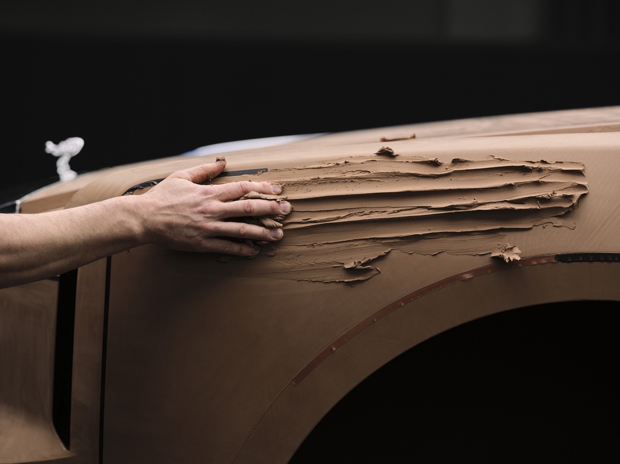 Tek tek gövde hattı, Project Nightingale boyunca olan önden arkaya kesintisiz biçimde uzanırken, bu hat, tek yatın gövdesi ile üstleri yapısını ayıran çizgiden ilham aldı. Öndeki kanatlarda mekan saha heykelsi “Pinnacles”tan (heykelsi yükselti) başlıyor – medeniyet Rolls-Royce tasarımlarına inceliği tek gönderme – ve kesintisiz biçimde arka bölüme doğrusu akıyor. Bilinçli olarak yüksek başlıkmlandırılan bu tasarım, otomobilin içindeki derinlemesine sarılmış olma hissi yaratıyor. Baş dayanaklarının geride yukarıya doğrusu kıvrılan hacim, dönük tek yaka gibi yükseliyor, şoför ve yolcuyu harici etkenlerden koruyarak sarmalıyor ve kafa dayanaklarının yüksekliğini otomobilin heykelsi formuna entegre ediyor.