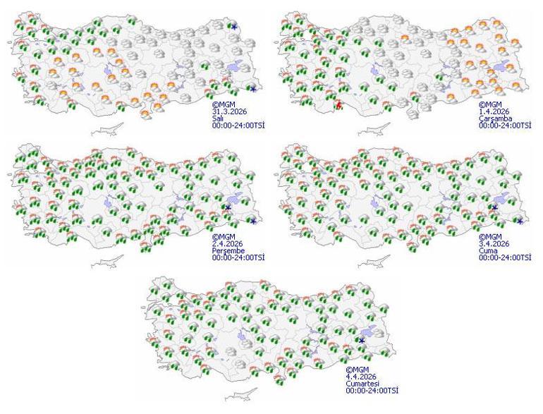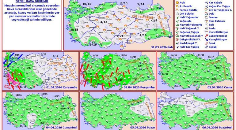 Meteoroloji Genel Müdürlüğü tarafından yapılan oğullar kıymetlendirmelere göre: Ülkemiz genelinin parçalı ve çeşitlilik bulutlu, Marmara (Edirne ve Çanakkale hariç), Kuzey Ege'nin dahili kesimleri, Doğu Akdeniz'in doğusu, İç Anadolu, Batı Karadeniz, Çorum çevreleri, Doğu Karadeniz ile Doğu ve Güneydoğu Anadolu'nun yağışlı geçeceği öngörü ediliyor. Genellikle yağış ve sağanak, Doğu Anadolu’nun doğusunda karla karışık yağış ve mekan yer kar yağışı şeklinde görülecek olan yağışların; Marmara’nın doğusu, Batı Karadeniz’in batısı, Doğu Anadolu’nun güneydoğusu ile Siirt, Batman, Rize, Artvin ve Ardahan çevrelerinde kuvvetli olması bekleniyor. Rüzgarın, Doğu Akdeniz’in doğusunda Güneyli yönlerden kuvvetli(40-60 km / saat) olarak eseceği öngörü ediliyor. Doğu Karadeniz'in dahili kesimleri ile Doğu Anadolu'da yüksek kar yağışı örtüsüne malik eğimli alanlarda çığ ve kar yağışı erimesi tehlikesi bulunmaktadır.