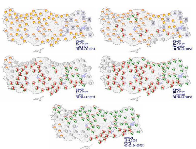Cumartesi ve Pazar günleri ise yağışlı sistemin tesir alanını genişleterek hepsi Anadolu’ya yayılması öngörülüyor.