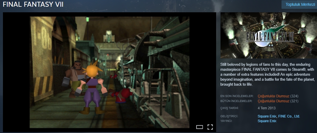 Final Fantasy VII’nin Steam’de yeniden yayınlanan sürümü, oyunculardan beklenen ilgiyi görmüş olsa da görüş tarafında vahim tek gerileme yaşıyor. Orijinal oyunun 2013 PC versiyonunun yerini saha bu yepyeni sürüm, mağazalar sayfasında kısa sürede “Çoğunlukla Olumsuz” üye kıymetlendirmesine geriledi.