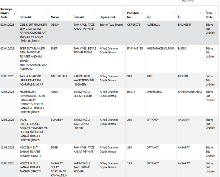 Bugün Antalya! Kentten gelen görüntüler şaşırttı... Gökyüzü renk değiştirdiBakanlık tarafından açıklanan verilere göre, Eker Süt Ürünleri Gıda Sanayi ve Ticaret A.Ş.’ye ait Mustafakemalpaşa fabrikasında üretilen '1000 Gram Tam Yağlı Beyaz Peynir' ürününün şişman oranının alçak olduğu belirleme edildi.