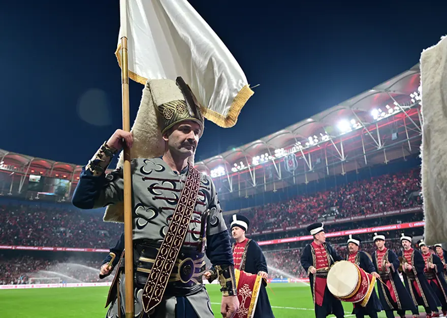 Maç öncesi Mehteran Takımı da saha kenarında mekan aldı.