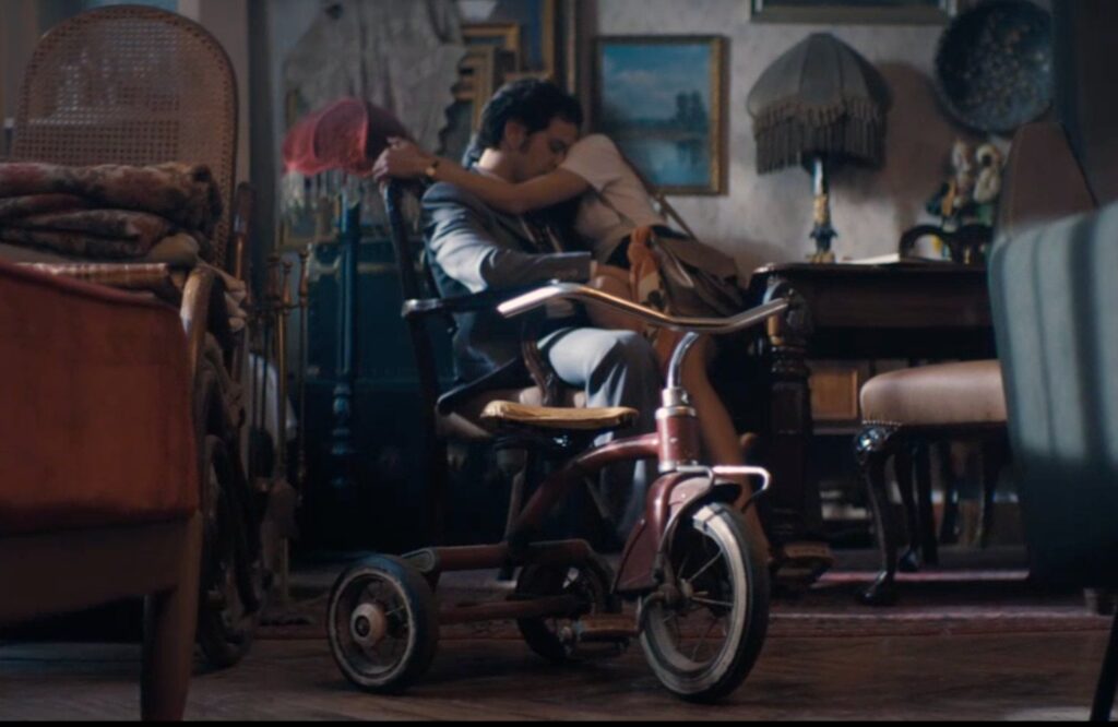 M.G.: Biriktirme fikrini estetik tek kalabalık olarak değil, zamanın katılaşması olarak ele aldık. Nesneler çoğaldıkça mekânın nefesi daralsın istedik. Her objenin tek zamanı, tek anı ve tek hissi karşılığı olmasına ilgi ettik. Nesneleri yerleştirirken yalınce kompozisyonu değil, tekrarlarını ve kadraj içindeki başlıkmlarını da düşündük. Kamera bazı objelere geri dönüyor, bazıları ise arka planda yavaş yavaş çoğalıyor. Bu tekrarlar tek hafıza mekaniği kuruyor. Sonuçta nesneler dekor değil; zamanın ve kaybın izini taşıyan anlatı araçları hâline geldi. Biz da bu dili, yönetmenimiz Zeynep Günay ve görüntü yönetmenimiz Ahmet Sesigürgil’le kurduğumuz müşterek dünya içinde, eş zamanlı olarak inşa ettik.