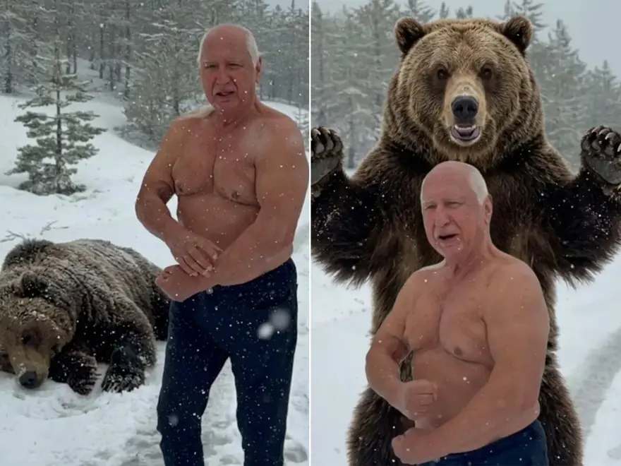 Prof. Dr. Şener Üşümezsoy, oğullar olarak toplumsal medya hesabından "Kurt Adam Ayılarla Arkadaş" iletiıyla görseller paylaştı.