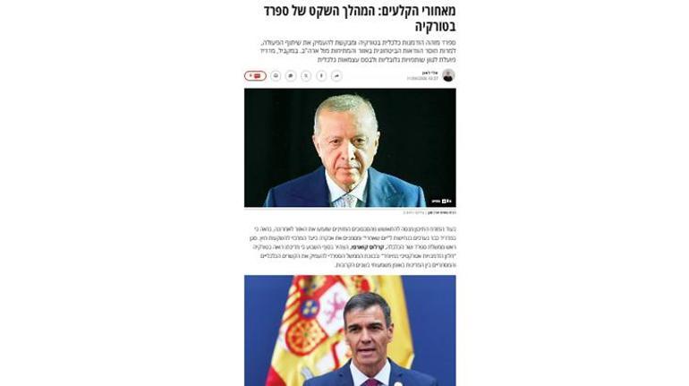 MİLLİYET.COM.TR / İsrail basınından Maariv, “Perde arkasında: İspanya’nın Türkiye’deki yerleşik hamlesi” başlıklı haberleriinde Türkiye-İspanya ilişkilerini mercek altına alarak Madrid’in Ankara’ya yönelik ekonomik açılımının hepsi detaylarını kamuoyuna taşıdı ve gelişmeler İsrail basınında genişliği yankı buldu.