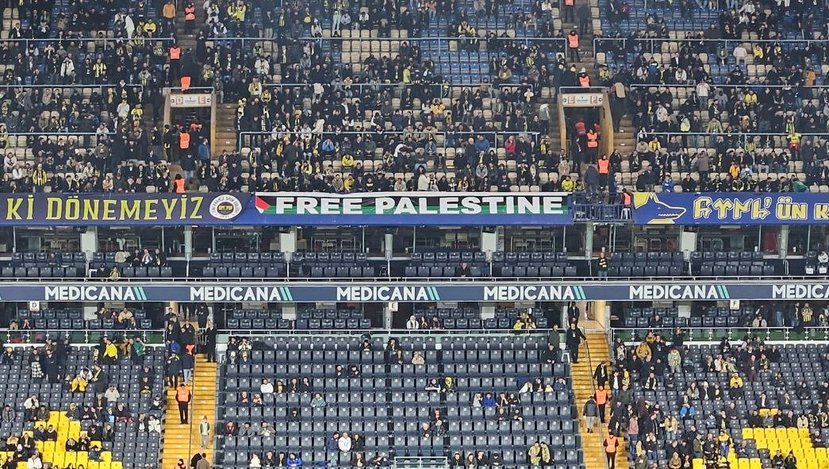 Trendyol Süper Lig'in 21. haftasında evinde Natura Dünyası Gençlerbirliği'ni ağırlayan Fenerbahçe'de taraftarlar, tribüne astıkları "Özgür Filistin" pankartı ile ateşkese rağmen Filistin'de devam eden soykırıma sessiz kalmadı.