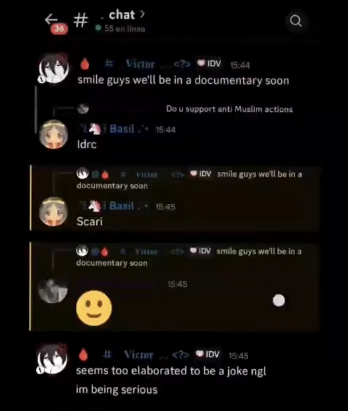 Arjantinli arkadaşının paylaştığı ve olayın ardından Discord üzerinde yaptıkları başlıkşmaları gösteren imge görüntüsü.
